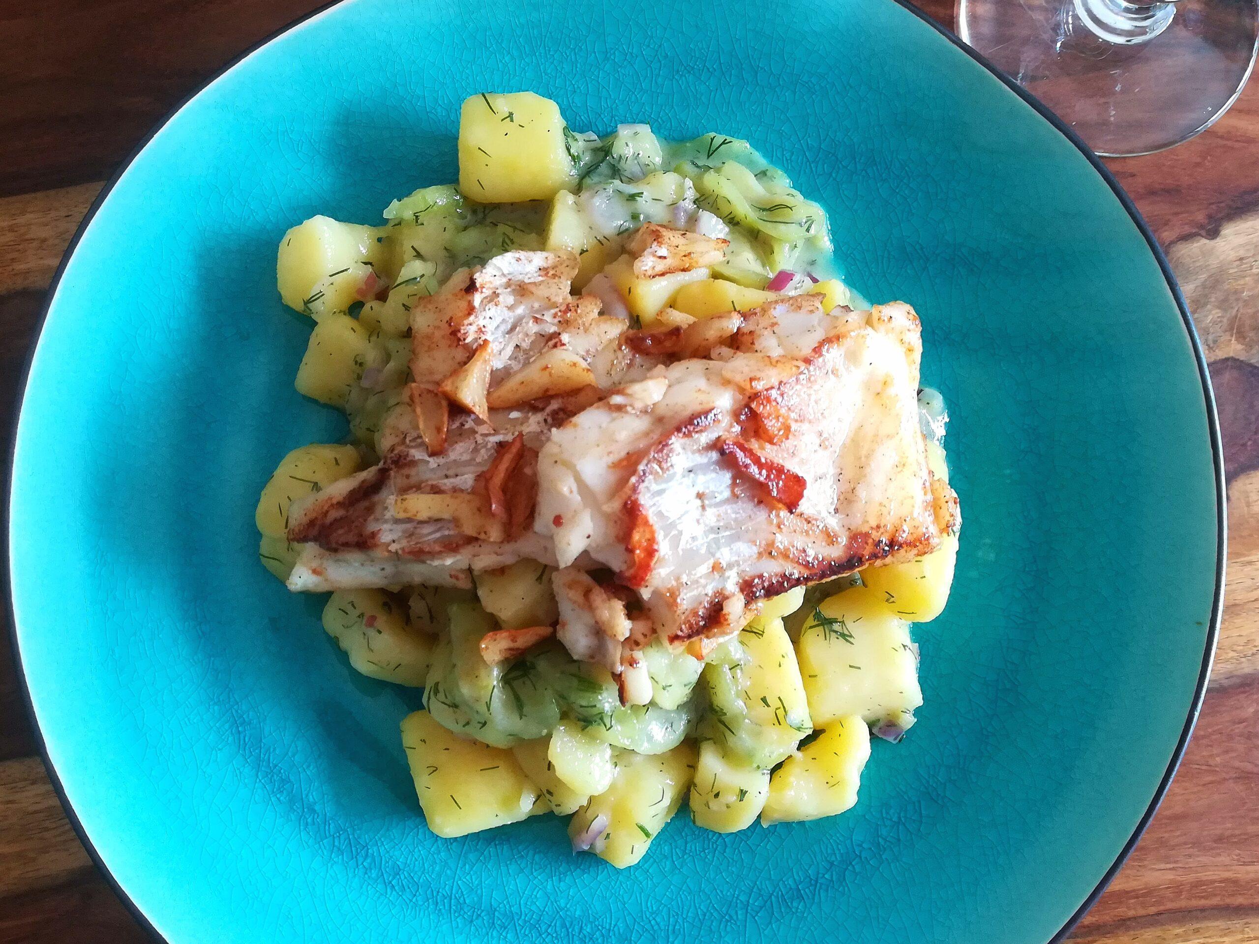 Kabeljaufilet mit Kartoffel Gurken Salat