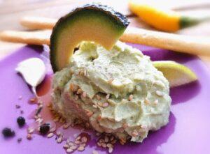 Mit dem Pürierstab mixen bis zur gewünschten Konsistenz. Mit Salz & Pfeffer abschmecken. Ggf. noch etwas Zitronensaft dazu und mit Sesam und geschrotetem Chilli bestreuen und mit gutem Olivenöl beträufeln.
