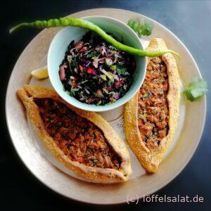 Pide kuşbaşı mit Rotkohlsalat