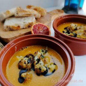 Orientalische Karotten- Linsensuppe mit gerösteten Blumenkohlröschen & Koriander