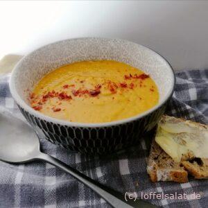 Halve the vegetable onion and place it in a saucepan with the cut surface facing down, let it roast. Then add the properly washed red lentils and roast a little. Now add the liquid and simmer for 15-20 minutes. Puree everything. Put the butter in a casserole, add the paprika pulp, fry everything and pour onto the soup. Be careful, take the pot off the stove, otherwise it could boil over. Season everything with salt, cumin and some PulBiber.