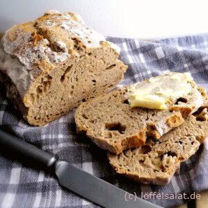 20 Minuten kneten, Hand oder Maschine & 4 Stunden gehen lassen. Bei 240 Grad 10 Minuten Ober- und Unterhitze dann die Temperatur auf 200 Grad runtersteigen und weitere 25 – 30 Minuten backen.